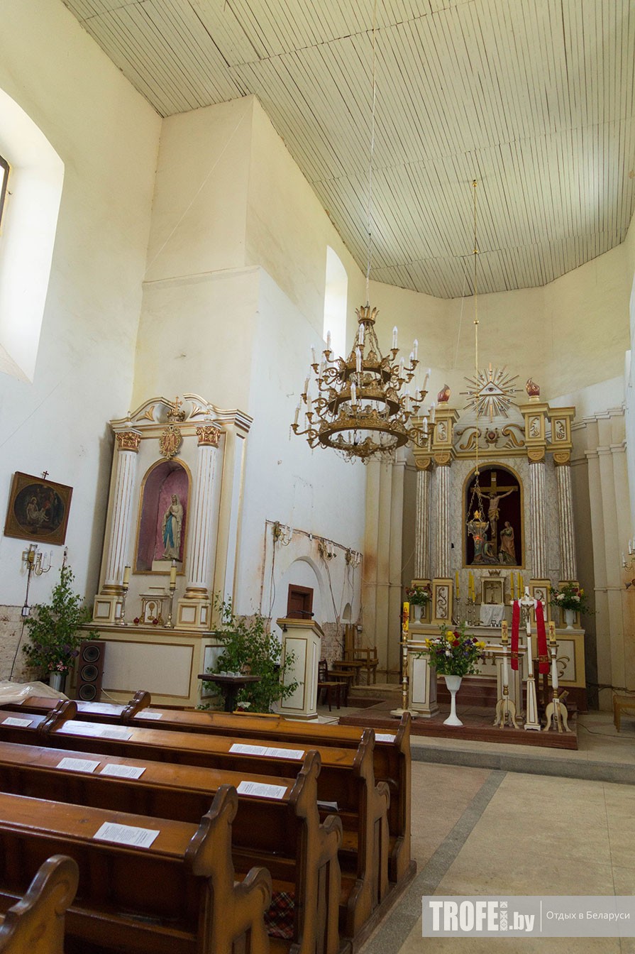 Благодарим Алексея, прощаемся и едем во Вселюб. Здесь находится костел начала XV века, ничем не примечательный, кроме того, что он, предположительно, самый старый в Беларуси. Внутри идет ремонт, но когда закончится – неизвестно: служитель, открывший костел по нашей просьбе, жалуется на катастрофическую нехватку средств.
