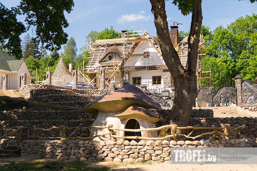 Наш следующий пункт – агрогородок Вселюб, но на выезде из Новогрудка мы заметили у дороги весьма необычную усадьбу. Она-то нас и задержала в пути. Мы не сразу поняли, что это тот самый фэнтези-дом в деревне Литовка новогрудского бизнесмена Сергея Коваля, о котором недавно писали в СМИ. Но если бы заранее вспомнили о нем, то обязательно включили бы его в свой тур.