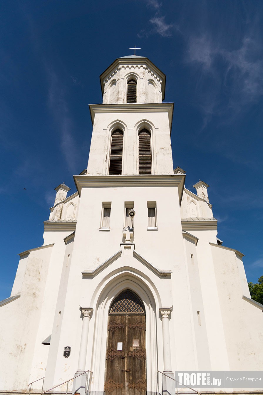 После прогулок по замковой горе взбираемся на «Курган Бессмертия», насыпанный в честь поэта Адама Мицкевича, уроженца Новогрудка. Ожидания красивых видов на замок не оправдались: обзор закрывает листва деревьев. Спускаемся назад и идем к фарному костелу, заложенному князем Витовтом в XIV веке, но позже перестроенному. Это один из самых древних храмов Беларуси.