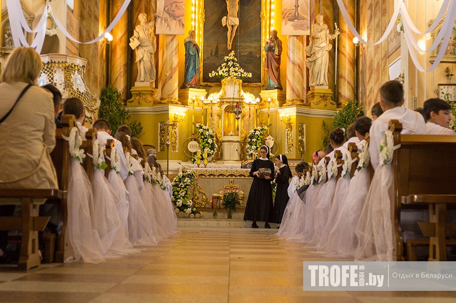 После замка посещаем барочный костел XVIII века, наполненный воспитанниками воскресной школы в белоснежных платьях, после чего архитектурный туризм плавно перетекает в гастрономический: грех не отведать пиво-квас в столице белорусского пивоварения, да еще и в фирменном кафе, примыкающем прямо к заводу.