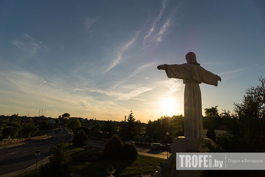Самым последним посещаем монастырь с костелом святых Петра и Павла в Ивье. Старинный монументальный храм не однажды перестраивался и обрастал новыми стилями. Но примечателен он не только этим: рядом с костелом возвышается фигура Иисуса Христа в такой же позе, как знаменитая статуя в Рио-де-Жанейро. Делаем селфи, обходим вокруг монастырь и возвращаемся в Минск, куда прибываем около 22:30.