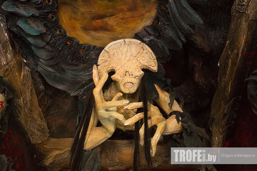 Сергей куда-то спешит и оставляет нас на своего товарища Алексея. У нас тоже немного времени, поэтому Алексей очень кратко, но очень складно и емко – как профессиональный экскурсовод – вводит нас в контекст всей этой фантасмагории. Здесь вам и дом гномиков, и садо-мазо-скворечник, и причудливые беседки, и скульптура душащей человека жабы, и комната страха – она же спальня, и «мягкая» комната – с мягким потолком, стенами, кушетками и полом…