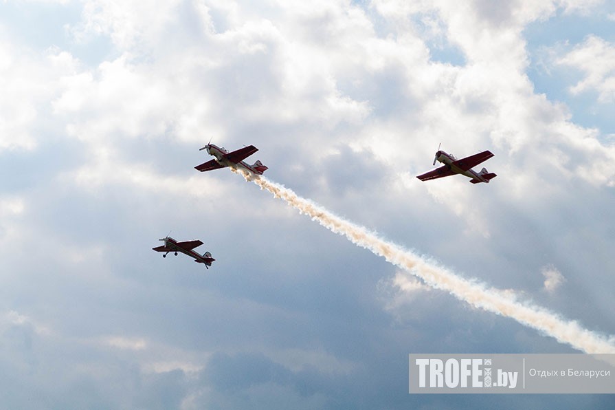 В вертолетных гонках приняли участие экипажи из Беларуси, Украины, России и Чехии. Фигуры высшего пилотажа на самолете Як-55 продемонстрировали гости из могилевского ДОСААФ. Установить парашютный рекорд, собрав фигуру силами 40 человек, к сожалению, не удалось. Но национальный рекорд на фестивале все равно был побит: 30 июля в небе парило 30 белорусских парашютистов. Кстати, поднимал спортсменов в небо оба фестивальных дня легендарный вертолет Ми-26, принимавший участие в съемках фильма «Крепкий орешек-5».