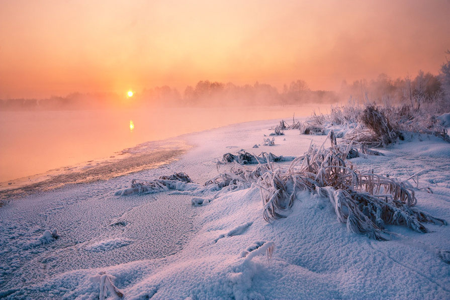 Морозный солнечный рассвет на Вилии. Совместная работа Сергея Шаховича (съемка) и Максима Вейзе (обработка):
