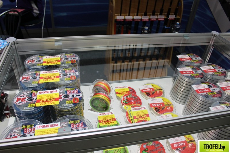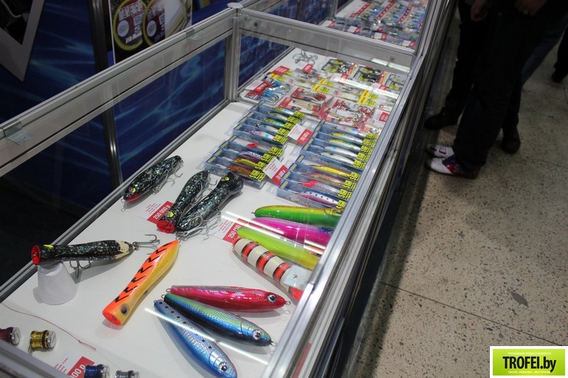 Тоже интересный стенд при входе. Воблеры по 20 см. Явно не для белорусской рыбы.