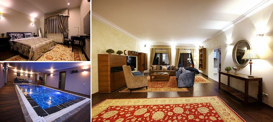 Здесь лидер по высоким ценам – вилла «Раубичи». Арендодатель, кстати, тот же, что и у самой дорогой квартиры в Минске. За «Раубичи» в новогоднюю ночь хозяин планирует брать 2 000$* и обещает за это такие прелести, как 6 комнат, 8 санузлов, гостиную, кухню, бассейн, SPA (финская баня, турецкий хаммам, сауна), барбекю, пирс и очень живописный вид из окон на лес и реку.