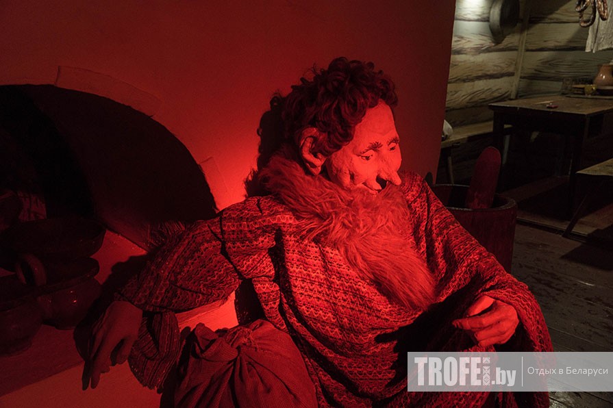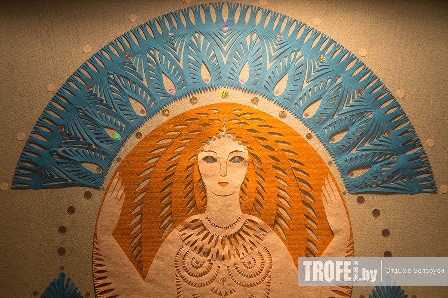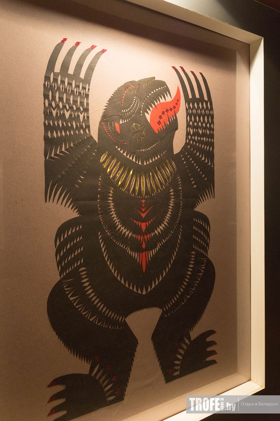 Музей мифологии и леса одиночные туристы обычно обходят вниманием. А зря, весьма милый музейчик. К выставочному залу ведет длинный коридор с красивыми вытинанками на стенах, изображающими существ белорусской мифологии. Главная экспозиция небольшая, но очень атмосферная.