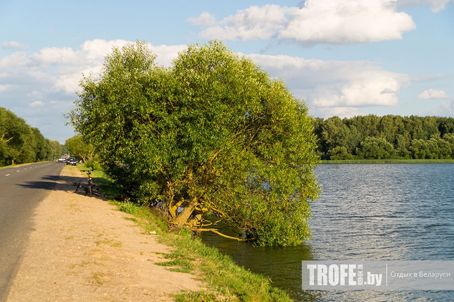 В 12:15 мы пересекаем МКАД по улице Мирошниченко, затариваемся в ТРЦ «Экспобел» и выезжаем на трассу. Почти весь путь до Заславля придется ехать именно по ней, в основном вдоль полей и лесов. Но будут и более живописные пейзажи, особенно на обратном пути – в том месте, где Заславское водохранилище вплотную примыкает к трассе.