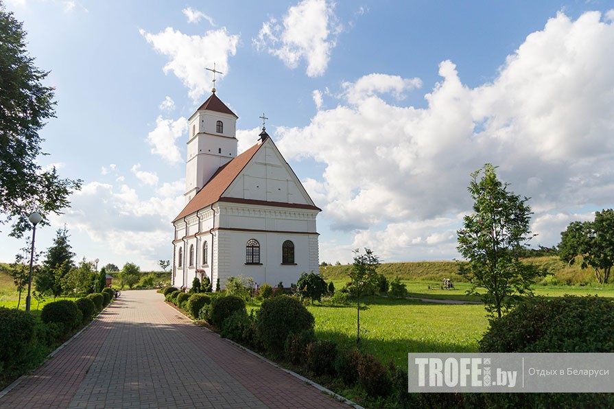 Первый наш пункт – деревня Семков Городок. Сюда заезжаем, чтобы посмотреть на церковь Рождества Богородицы, а в прошлом – костел, строительство которого датируется XVIII–XIX вв. Сейчас из полуразрушенного состояния церковь восстановили снаружи, а внутри все еще идут работы. Перекидываемся парой слов с рабочими и настоятелем, едем дальше.