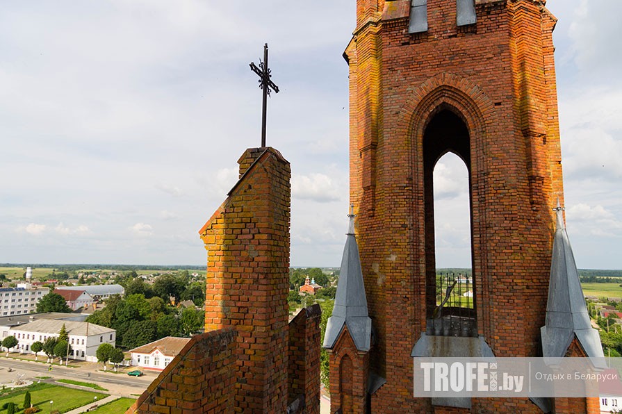 Возвращаемся в Видзы. В сопровождении звонаря добираемся до верхушки башни. Времени у нас мало: скоро должна начаться служба. Поэтому быстро фотографируем виды с башни и себя на их фоне, покупаем на выходе магнитик с изображением костела на память и едем дальше. Если вы вдруг забудете в благодарность за посещение башни приобрести какой-нибудь сувенир, вам об этом, скорее всего, напомнят:)