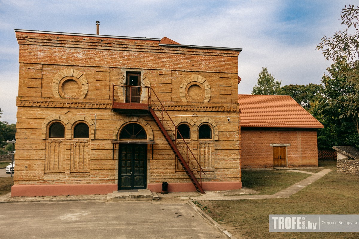 Буквально в паре метрах от костела Святого Михаила Архангела (за его оградой) расположено старинное здание, которое внешним видом напоминает панскую усадьбу. Но на самом деле это здание 1907 года постройки является плебанией.