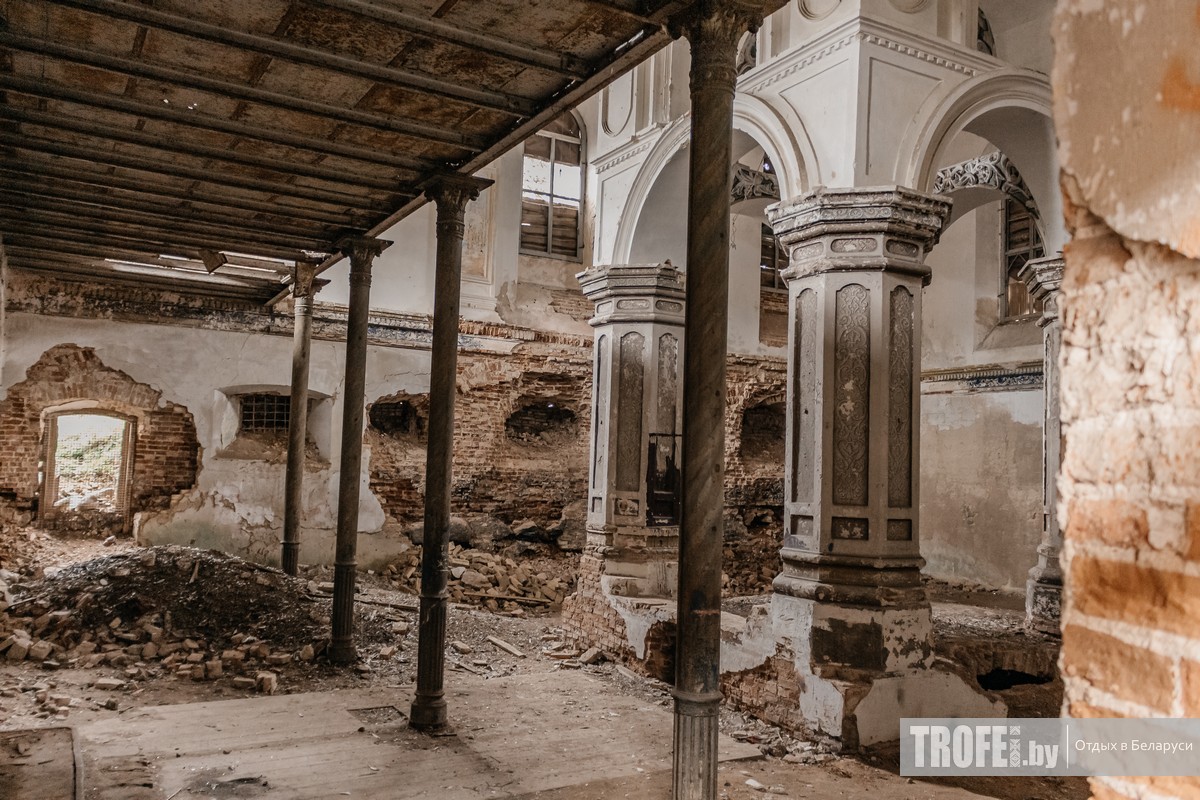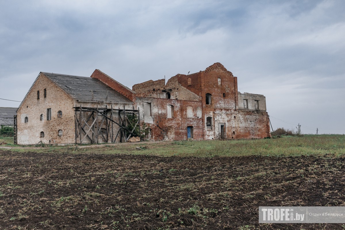 Не встретив на своем пути запрещающих табличек и знаков, не испугавшись ни дождя, ни отсутствия централизованного входа, мы отправились через поле на поиски одной из красивейших усадеб Беларуси, построенной в неоготическом стиле.