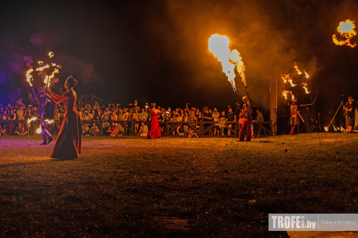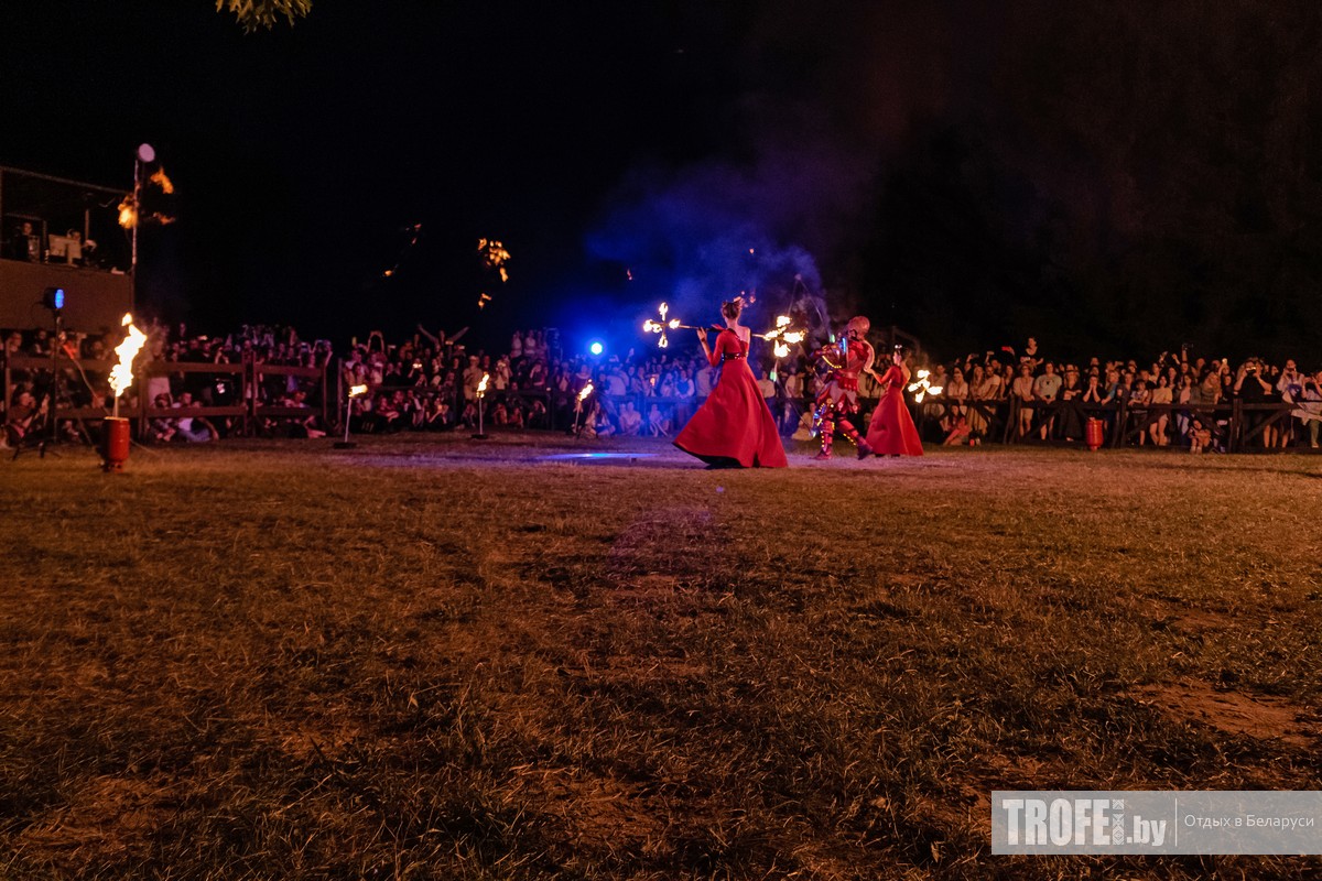 Так как нам надо было возвращаться в Минск на первой части фестиваля мы провели часа два и около 16:00 выдвинулись обратно в город. Вернуться на фестиваль мы планировали к началу самой зажигательной его части – фестивалю огненных театров. Но что-то пошла не так: мы приехали к 22:40 и застали только последний номер (выступление огненного цирка Kresiva), который с наступлением темноты смотрелось невероятно эффектно.