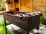 Двор коттеджа под Брестом «Уютный уголок» оформлен скульптурами сказочных персонажей и множеством декоративных растений. Здесь есть две беседки, располагающие зонами для приготовления шашлыка. Одна – большая, крытая, с камином, рассчитанная на 30 человек, вторая – летняя на 10 отдыхающих. На территории также располагается детская площадка с батутом, качели, вместительная парковка, летний бассейн.